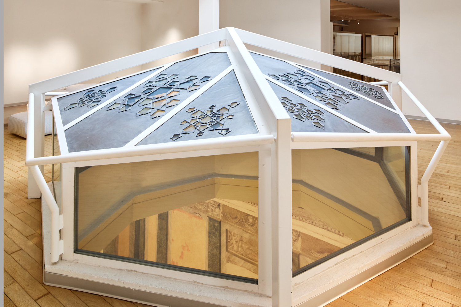 La mostra di Salvadori a Milano si svolge contemporaneamente a Palazzo Reale e al Museo del Novecento. In questo contesto, è presente un suo intervento site-specific che riesce a unire idealmente le due istituzioni. Si tratta di un’installazione eseguita su un lucernario in ferro e vetro che, situato in una delle sale del Museo del Novecento, è visibile anche dalla sala di Palazzo Reale a cui dà il nome (Sala del Piccolo Lucernario). Questa collocazione è sorprendente poiché il lucernario rappresenta un punto di contatto che rende visibile l’opera contemporaneamente ai visitatori nei due diversi luoghi.